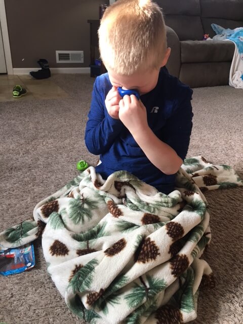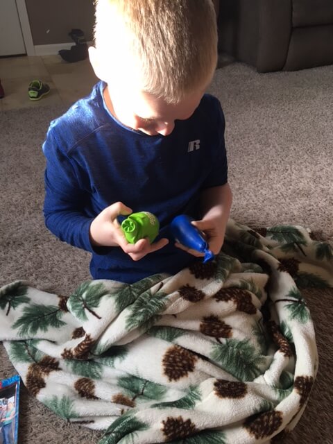 I totally recommend making these if you have a kiddo that likes to hold objects. They are super squishy. Cooper will carry these around until I eventually have to throw them in the garbage and make new ones.