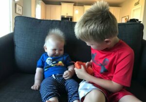 I asked you to watch your brother for a second while I made lunches. Which you gladly agreed too. The first thing you ask for when you come downstairs in the morning or in from outside is your baby brother. I heard you talking to him, like you always do. So sweet. You were telling him all about BeyBlades. And how cool there are. You were hugging him on the couch. Holding him so he wouldn’t fall. Every few seconds you would squish the whoopie cushion. Harbor would laugh hysterically.…