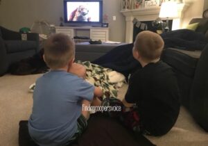 For the last three years, Sawyer and I watch a movie on Friday nights. We eat popcorn with way too much ranch seasoning, snuggle up with blankets, argue over what movie to watch, and talk about his day, farts, Nerf guns and hockey. It’s my favorite part of the week. And for the last three years, Cooper has ALWAYS been encouraged to join us. He rarely ever does though. He likes to wander around, move from room to room, watch his shows, line up his treasures and stim. That is…