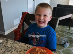 Food struggles. Some of the hardest battles we’ve had to date. I could tell you stories people. Tonight though, Super Cooper ate a whole plate of spaghetti and meatballs. And while he ate, Jamie and I reminisced about the days where he would throw chairs and tables (yes tables) over the sight of a blueberry, an apple or any new food. Up until Cooper was five years old he ate only four foods. The same four foods for every meal. Chicken nuggets, yogurt, Goldfish crackers and veggie straws. He also…